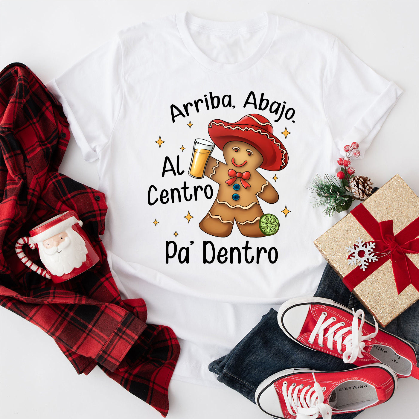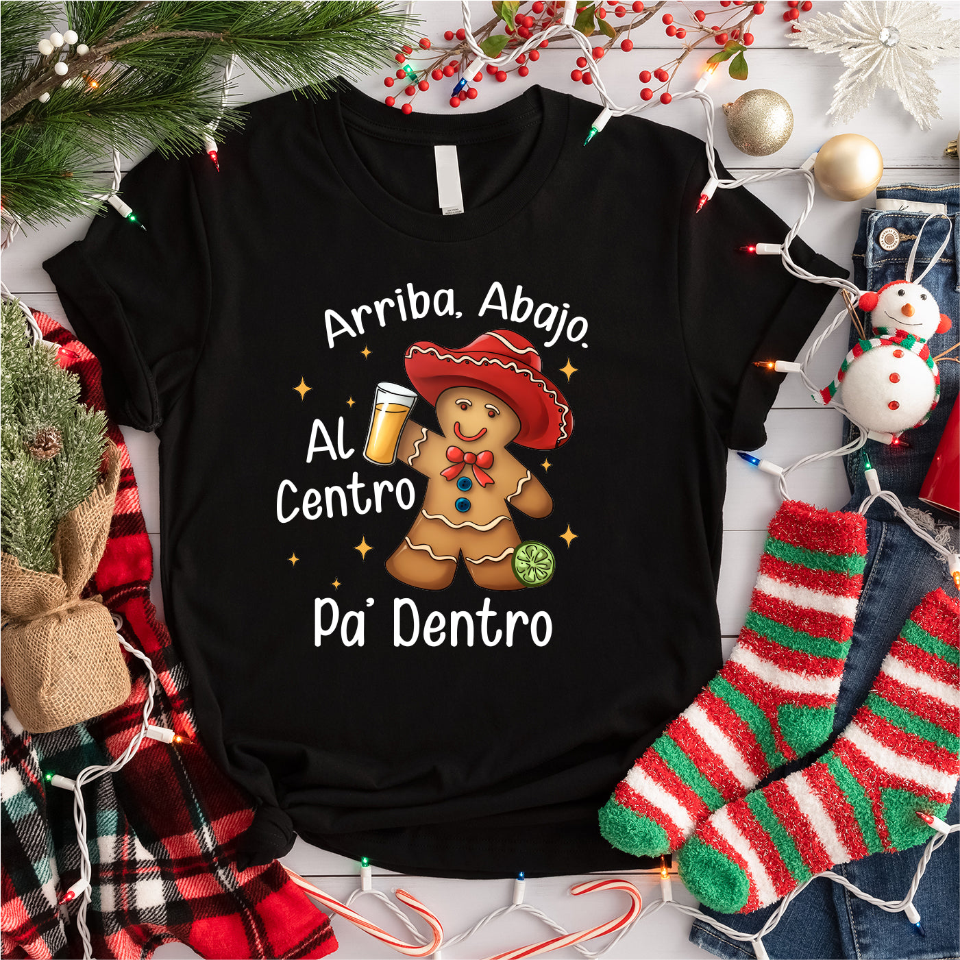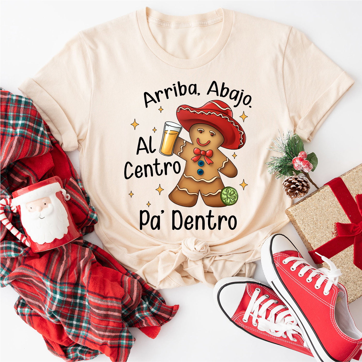 Arriba Abajo Al Centro Pa Dentro Latino Gingerbread Shirt, Feliz Navidad Shirt