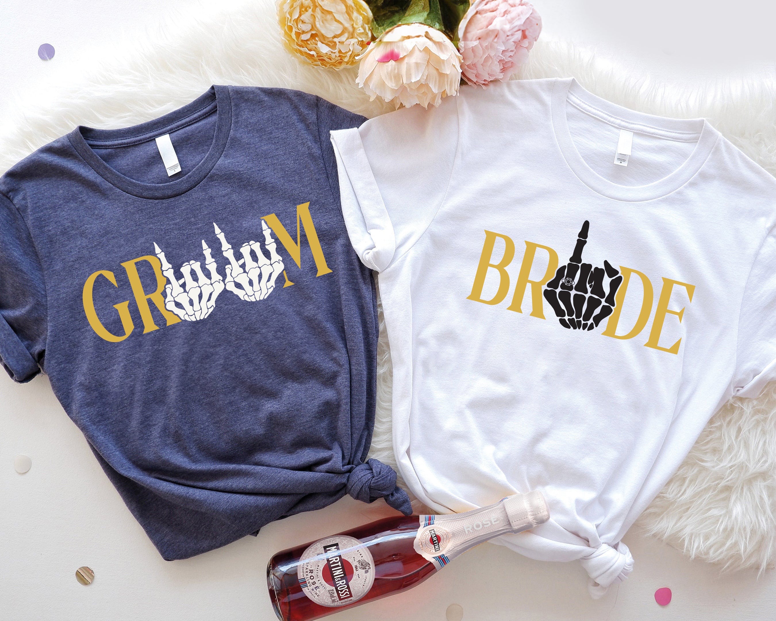 Groom And Bride Matching T-Shirt, Skeleton Couple Wedding Shirt, Wedding Trip Tee