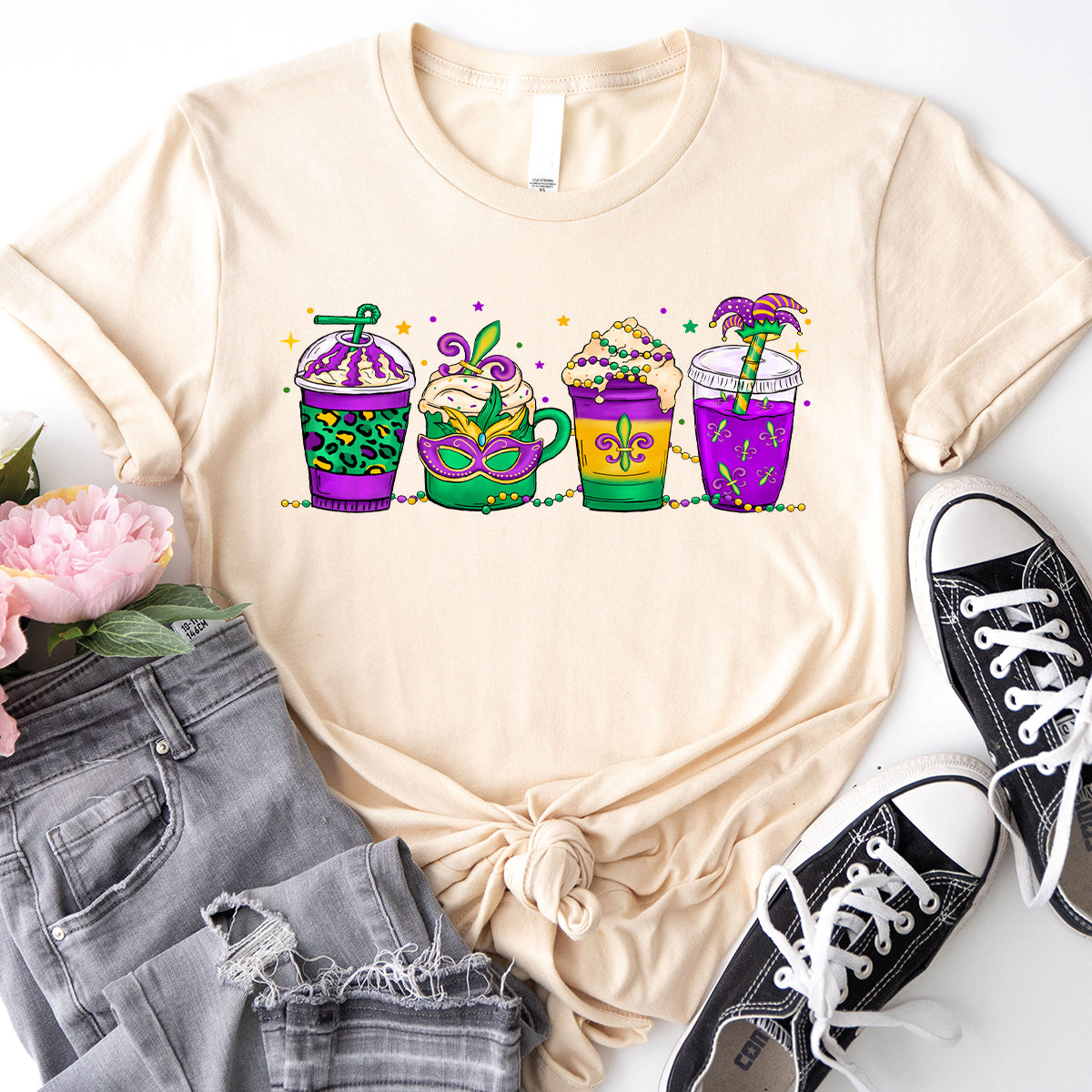 Mardi Gras Drink Shirt, Mardi Gras Drinking Party Sweatshirt, Wine Mardi Gras Beads Shirt
