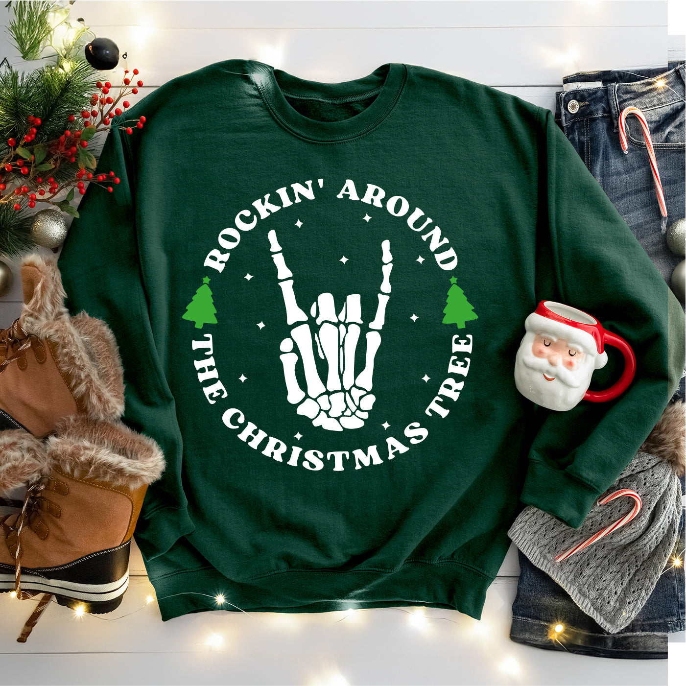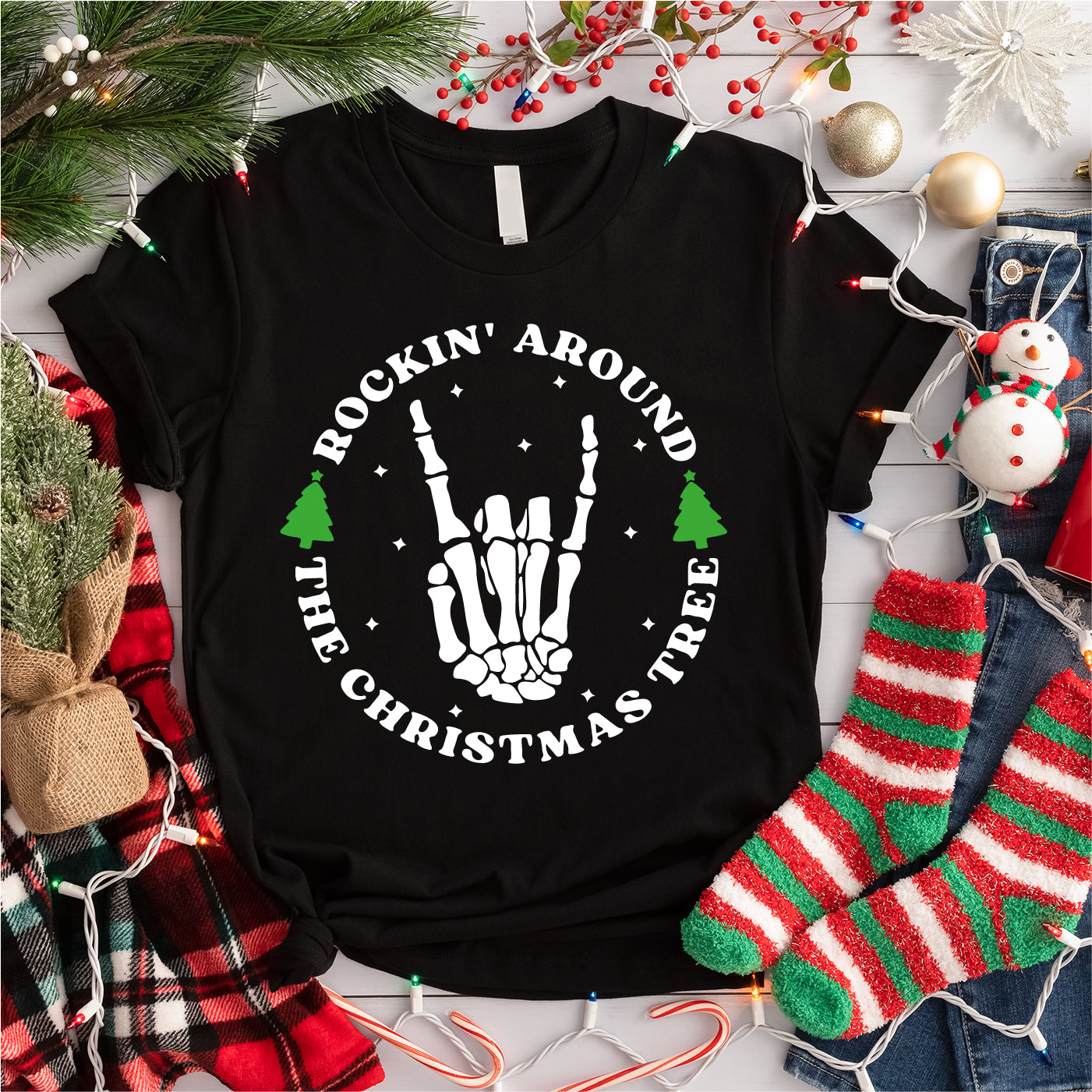 Rocking Around The Christmas Tree Shirt, Xmas Skeleton Shirt