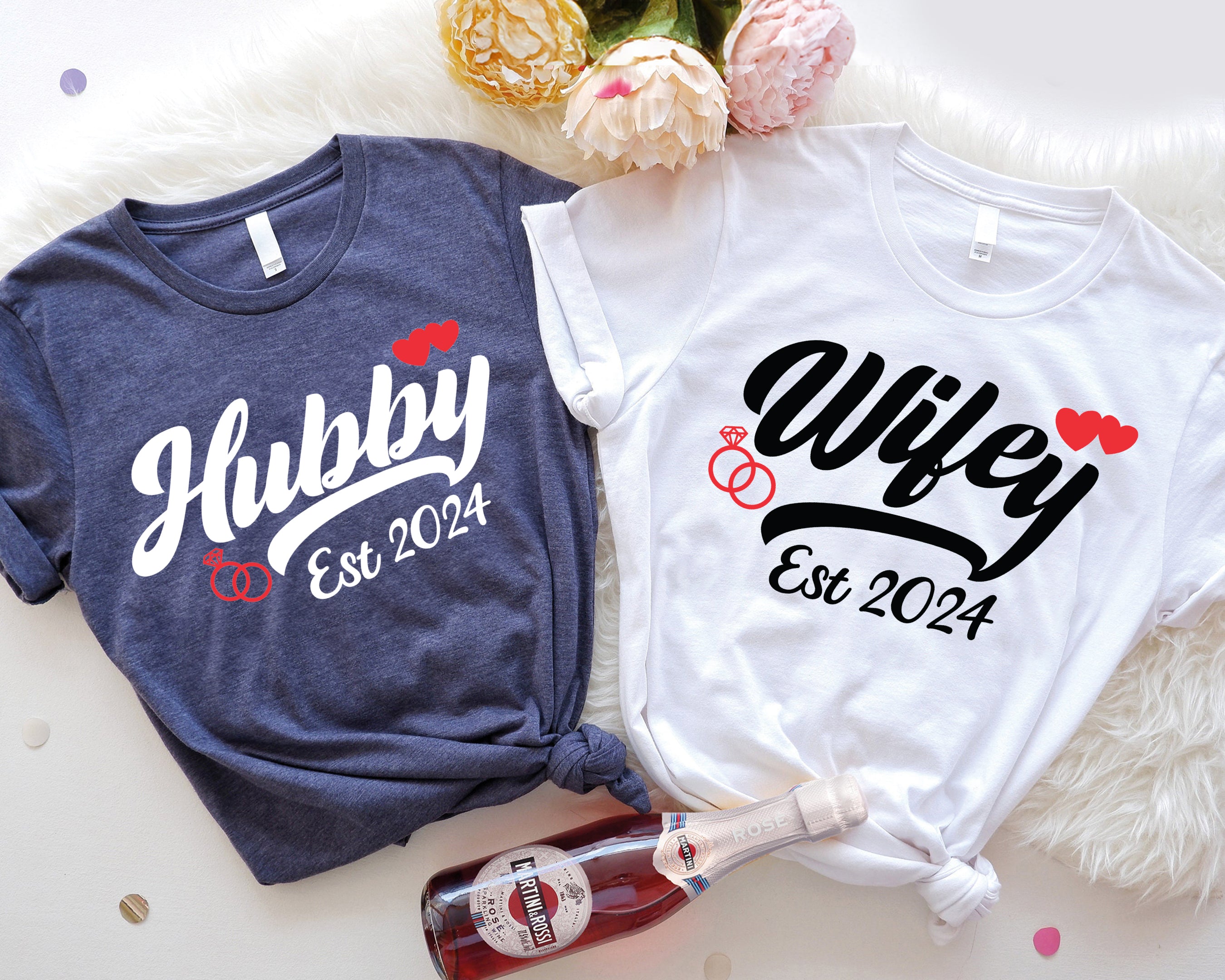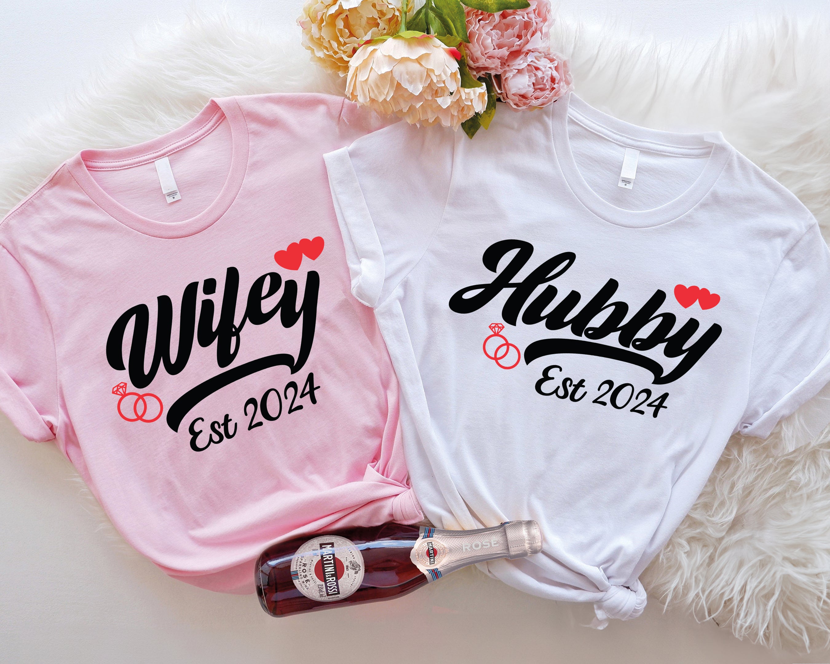 Wedding Tee, Just Married Shirts, Matching Couple T-shirt, bachelorette tshirt, wedding party shirt, wifey and hubby tee, wifey hubby est 2024, honeymoon shirt, wedding tee, matching couple tee, just married shirt, husband tshirt, wifey tee, hubby shirt, wife husband tee, couple shirt